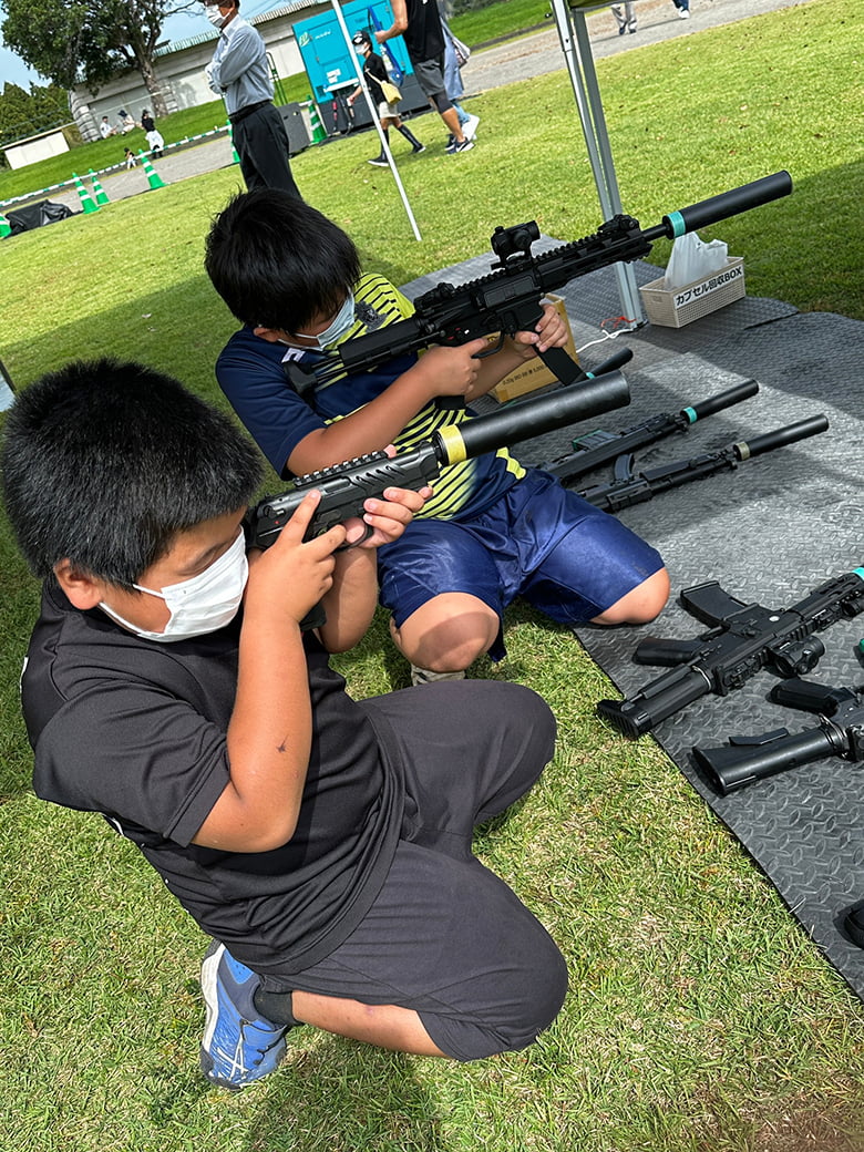 受付にて参加費をお支払いいただいた後、レーザーガンとレーザー受信機を専門スタッフ指導の下、貸し出しいたします。