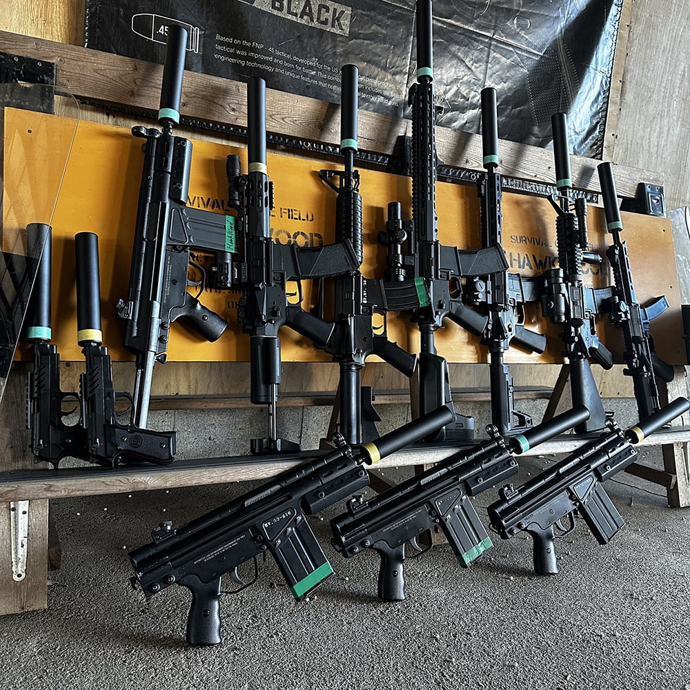 プレイヤーは頭に取り付けたレーザー受信機とレーザー発射機を取り付けたエアソフトガンを用いてプレイします。