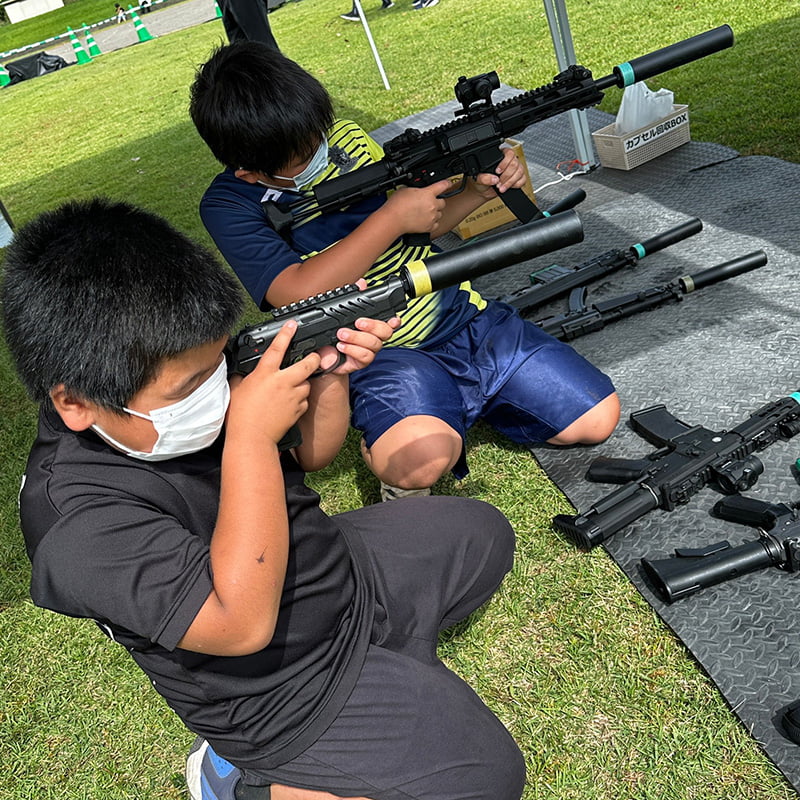 受付にて参加費をお支払いいただいた後、レーザーガンとレーザー受信機を専門スタッフ指導の下、貸し出しいたします。